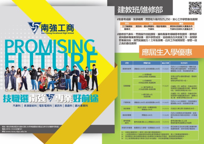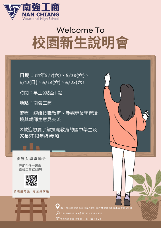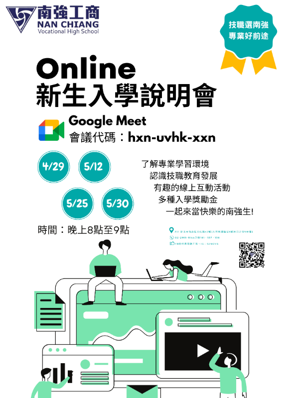 新北市私立南強高工辦理「認識技職教育」線上說明會及校園新生說明會,惠請學生及家長參加。