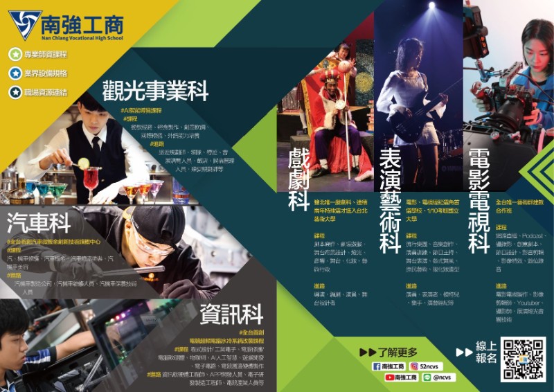 課程主題:認識技職教育、專業設施線上導覽與親師生意見交流,想要了解技職教育的國中學生及家長(不限年級),可直接掃描附件海報上的Qrcode,線上報名參加。