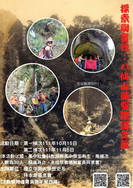 檢送國立中興大學歷史學系舉辦「探索與實作:八仙山時空鐵道之旅」活動海報電子檔1份,請老師踴躍報名參加。