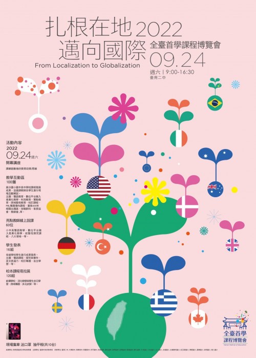 | 標題 | 臺南市政府教育局辦理全臺首學課程博覽會─「2022扎根在地‧邁向國際」,請踴躍現場或線上參與。 |