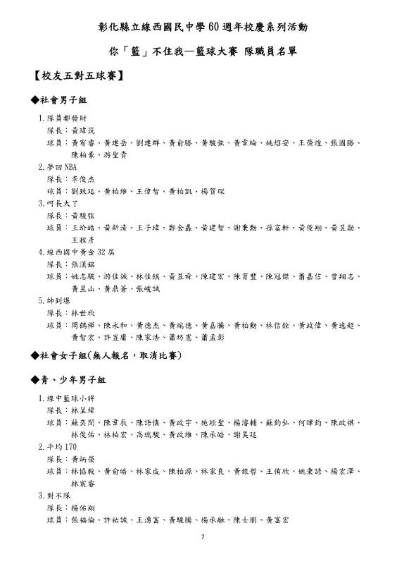 | 標題 | 公告:有關本校「60週年校慶系列活動—籃球大賽」 參賽名單及校友五對五比賽規則(調整) |