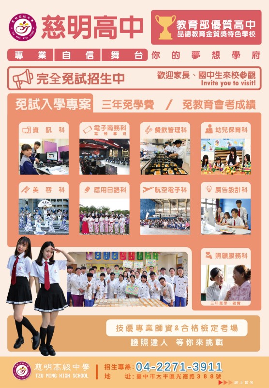 轉知:臺中市私立慈明高級中學『112學年度建教合作專班宣導』事宜 |