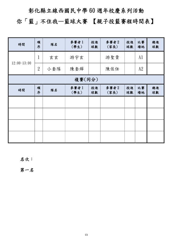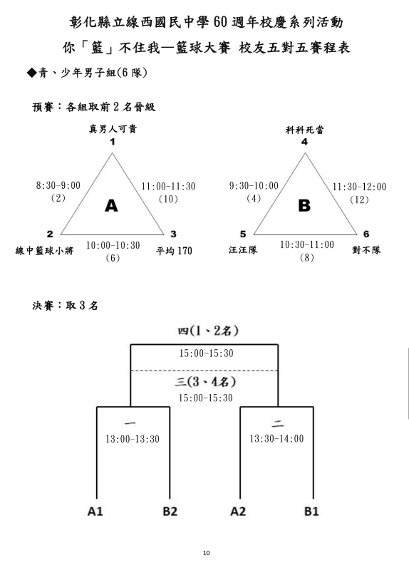 | 標題 | 公告:本校60年校慶系列活動 你「籃」不住我—籃球大賽賽程表 |