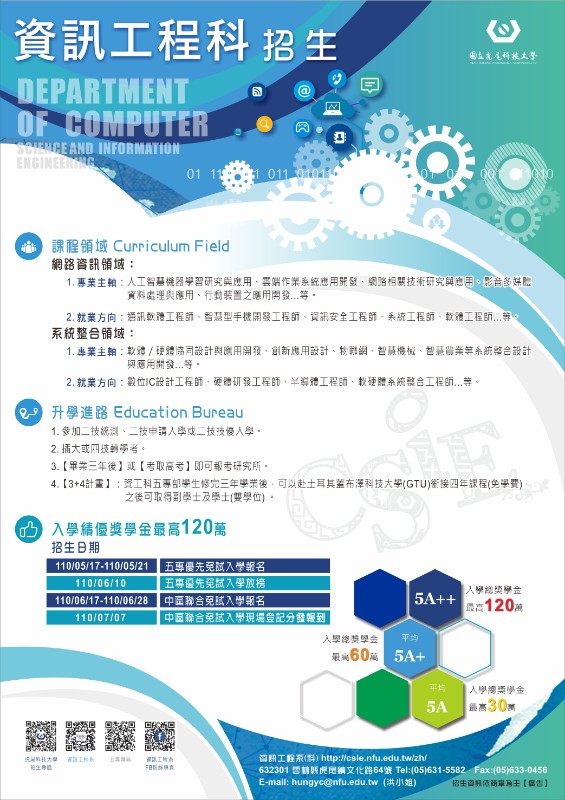 | 標題 | 轉知國立虎尾科技大學110學年度五專學制「資訊工程科」招生相關資訊 |