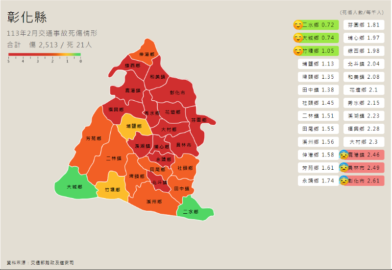 三、附件宣導圖為「113年2月交通事故死傷情形、鄉鎮市交通事故統計表、本縣各鄉鎮市30日死亡人數及事故與違規熱點」