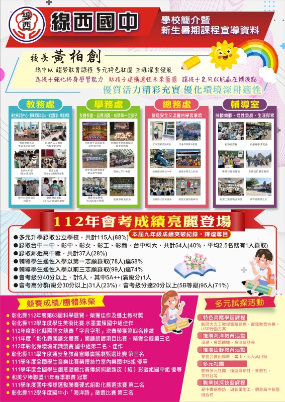 【新生】113學年度本校新生報到暨編班測驗相關事項 113學年度設籍本校學區之新生入學通知單,預計於6月3日(一)交寄各國小,委請國小端協助轉發應入學本校新生。若未收到信件,請與本校聯繫。 113學年度新生報到暨編班測驗