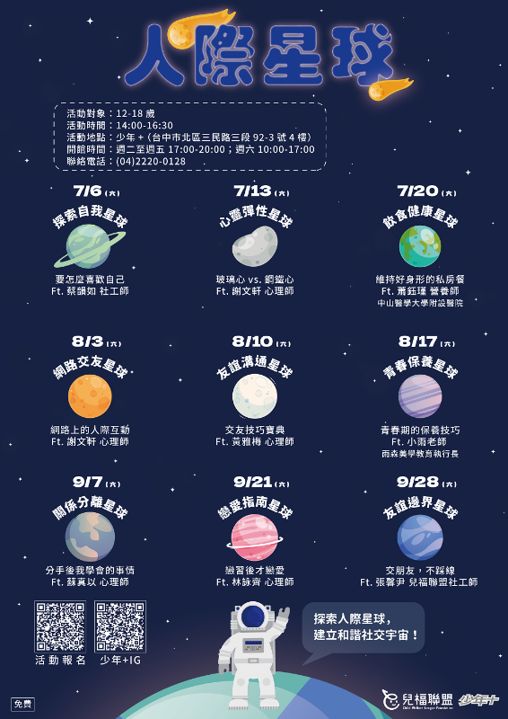 | 標題 | 轉知「少年+」據點2024年「人際星球」人際關係主題活動 |