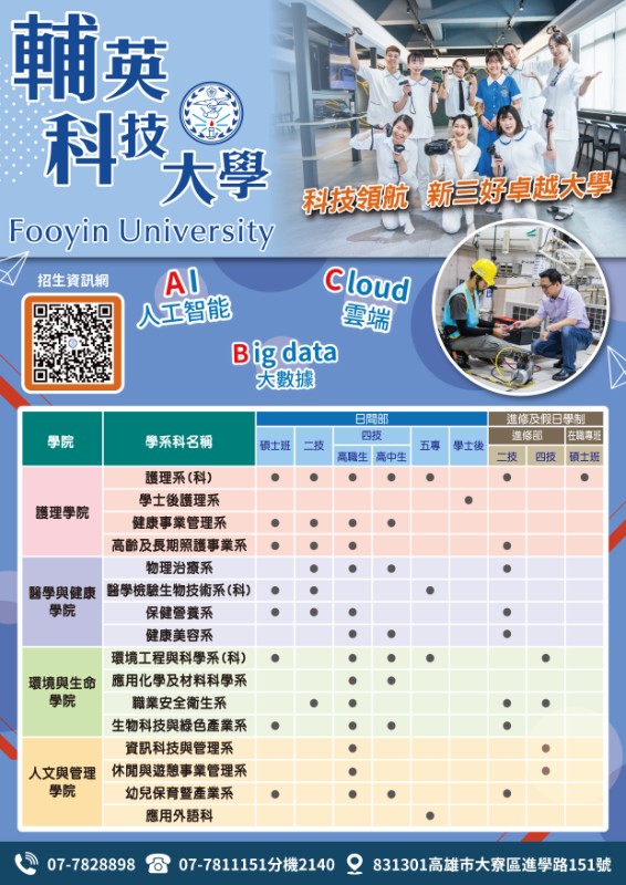 有關升學進路、學系科介紹、報名資格等入學相關問題,歡迎電洽招生暨入學服務中心,將由專人提供諮詢。