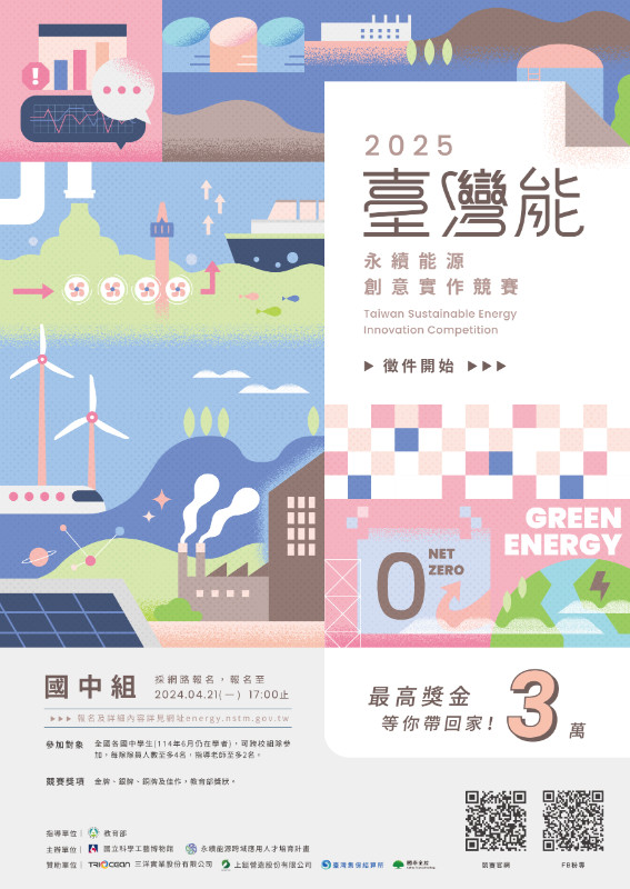 採網路報名(https://energy.nstm.gov.tw/),截止日期為本(114)年4月21日,檢附競賽國中組海報乙份,敬請協助宣傳。如需到校說明會,請洽:energy@mail.nstm.gov.tw。 |