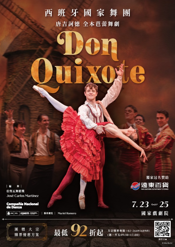一、表演重點: (一)藝文活動為多元藝術的展現,為拓展台灣觀眾的藝文素養與舞蹈藝術之視野,本公司引進與《天鵝湖》並列為最受歡迎的古典芭蕾舞劇之一的《唐吉訶德》,由西班牙最具代表性的「西班牙國家舞團」全本演出。與多數偏向悲劇色彩的故事不同,《唐吉訶德》故事圍繞在唐吉訶德旅途上遇到的一對西班牙戀人的愛情故事,寫實與幻想場景交織出豐富的戲劇層次及充滿節慶的歡快氛圍,加上西班牙國家舞團特有的熱情澎派佛朗明哥風格,是一齣別開生面、熱鬧有趣的國家級芭蕾舞演出!在舞蹈技巧上,《唐吉訶德》也以炫技十足的舞蹈段落與濃厚戲劇張力聞名於世,包括經典大雙人舞中舞者需以高度默契完成連續高難度托舉、旋轉與跳躍,以及女主角獨舞中的「32鞭轉」更是對舞者平衡感、核心力量與心理專注度的極限考驗。誠摯推薦師生前來欣賞,感受既保有古典芭蕾嚴整的結構之美,也流露濃厚地域文化風情的芭蕾舞劇《唐吉訶德》。 二、表演介紹: (一)改編跨世紀經典文學巨作.傳遞最純正的西班牙民族精神。 (二)西班牙國家舞團自創立以來,歷經多位世界級藝術總監領軍,在古典與當代之間不斷拓展藝術疆界,兼具技術實力與文化深度。此次來台演出的《唐吉訶德》,更被視為舞團詮釋古典芭蕾語彙與西班牙民族精神的代表之作,充分體現其「以國家文化為根,與國際舞台對話」的藝術定位。 (三)全本芭蕾舞劇《唐吉訶德》改編自西班牙文學巨匠塞萬提斯(Miguel de Cervantes Saavedra)的同名小說,原著為世界文學史上最具影響力的作品之一。芭蕾版本雖以小說中支線情節為創作主軸,卻保留原著對理想、自由與愛情的追尋精神。舞劇故事圍繞熱情奔放、聰慧機敏的少女姬特莉(Kitri)與真誠勇敢的理髮師巴西里奧(Basilio),兩人為追求自由愛情、對抗權威與世俗安排,展開一段充滿幽默、冒險與浪漫色彩的旅程。在唐吉訶德與桑丘.潘沙的穿針引線下,整齣舞劇在寫實與幻想之間交織出豐富的戲劇層次。 (四)世界級編舞家Martínez操刀.芭蕾結合熱情佛朗明哥舞蹈。 (五)本次演出版本由現任巴黎歌劇院芭蕾舞團舞蹈總監、伯努瓦舞蹈獎(Benois de la Danse)得主 José Carlos Martínez 改編創作。Martínez 以19世紀「古典芭蕾之父」莫里斯.佩蒂帕(Marius Petipa)的經典版本為基礎,在尊重古典技術體系與結構框架的前提下,融入更鮮明的西班牙文化元素,使人物性格更加立體,並透過舞段節奏與場景轉換的流動設計,讓敘事更為緊湊而富層次。 (六)在舞蹈風格上,Martínez 將嚴謹細膩的古典芭蕾技巧,與熱烈奔放的佛朗明哥精神巧妙融合。從手腕、指尖到腳步節奏的細節設計,都可見西班牙民族舞蹈的影子,使作品在華麗炫技之外,更具文化辨識度與情感溫度。舞台美學亦呼應西班牙風土色彩,透過鮮明明亮的色調與層次豐富的群舞場面,營造出節慶般的熱情氛圍。 (七)超高絕技「32鞭轉」「經典大雙人舞」.宛如節慶般的視覺饗宴。 (八)舞劇《唐吉訶德》素以熱情奔放的音樂、炫技十足的舞蹈段落與濃厚戲劇張力聞名於世,與《天鵝湖》並列為全球最受歡迎的古典芭蕾舞劇之一。劇中最令人期待的包括第三幕婚禮場景中的經典大雙人舞(Grand Pas de Deux),舞者需以高度默契完成連續高難度托舉、旋轉與跳躍,展現爆發力與穩定度兼具的技術實力;姬特莉獨舞中的「32鞭轉」(32 fouettés)更是對舞者平衡感、核心力量與心理專注度的極限考驗,往往成為全場掌聲雷動的高潮時刻。 (九)此外,群舞段落融合西班牙民族舞蹈的節奏與動態線條,從熱鬧市集到夢幻的風車與精靈場景,場面轉換層次分明,既保有古典芭蕾嚴整的結構之美,也流露濃厚地域文化風情,使整體舞作在技巧與情感、傳統與創新之間取得精彩平衡。 (十)此次,由「遠百獨家呈獻西班牙國家舞團攜全本芭蕾舞劇《唐吉訶德》」來台,不僅是一場國際級芭蕾盛會,更是一場跨越文學、音樂與舞蹈的西班牙文化饗宴,帶領觀眾走進《唐吉訶德》內理想與愛情交織的奇幻世界。 三、表演場次: (一)台北國家戲劇院(臺北市中正區中山南路 21-1 號) 1、2026年7月23日(四)19:30 2、2026年7月24日(五)19:30 3、2026年7月25日(六)19:30 四、購票優惠方案及票價: (一)校園專屬優惠方案: 1、單筆訂購2張(含)以上,至3/31止,享92折。 2、自4/1至7/15止,享95折。 3、折扣適用2,280元(含)以上票區。 (二)訂購連結:https://pse.is/8thuxl (三)演出資訊 1、獨家冠名贊助:遠東百貨 2、主辦單位:聯合數位文創 3、製作團隊:Compañía Nacional de Danza 4、演出時間:2026/7/23至7/25,共三場 5、演出地點:國家戲劇院(地址:臺北市中正區中山南路21之1號) 6、活動官網:https://uevent.udnfunlife.com/2026CNDDON 7、場次票價:$4,680/ $4,280/ $3,880/ $3,380/ $2,880/ $2,280/ $1,280(多元友善席*2、友善陪同席*2 $4,280;多元友善席*2、友善陪同席*2 $2,280;輪椅席*6、陪同席*6 $1,940;輪椅席*4、陪同席*4 $1,690;輪椅席*1、陪同席*1 $1,140) 五、敬請惠予公告本表演相關訊息於貴單位。 六、檢送本活動EDM,呈請貴校員工、師生及家長踴躍參加。 七、本案校園承辦單位:通路行銷中心服務專線:02-26491689#1(周一至周五09:30~17:00)