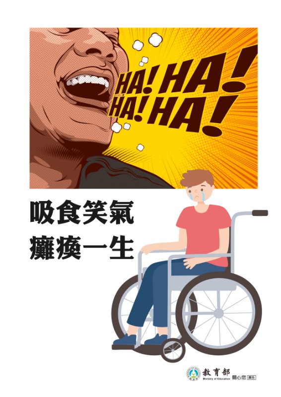 反毒宣導:【吸食笑氣癱瘓一生】。