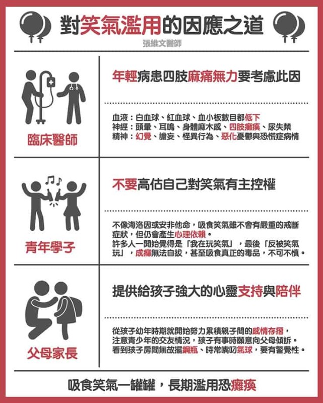 在了解笑氣濫用這個在青少年間竄起流行的次文化、以及笑氣對身體造成的傷害後,家長們應該對於「吸氣球」這個行為更加有警覺性。