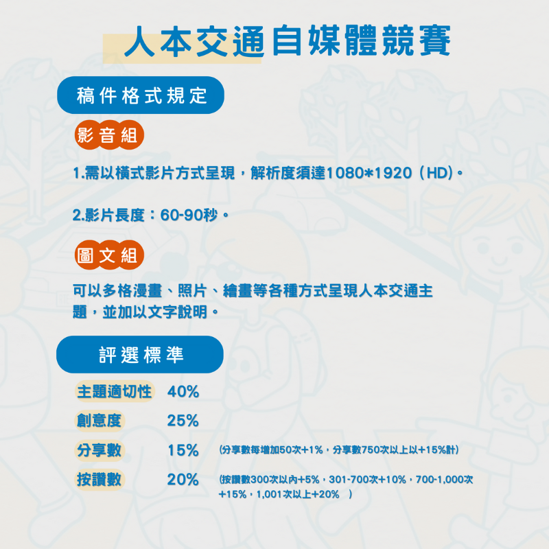 函轉苗栗縣政府辦理「人本交通自媒體競賽」活動一案,請轉知所屬踴躍參加並協助推廣。