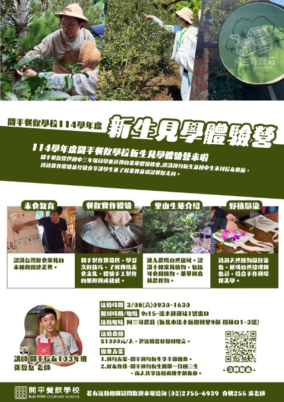 活動對象:全國國中生36位。(開平預約新生、國三生優先) |