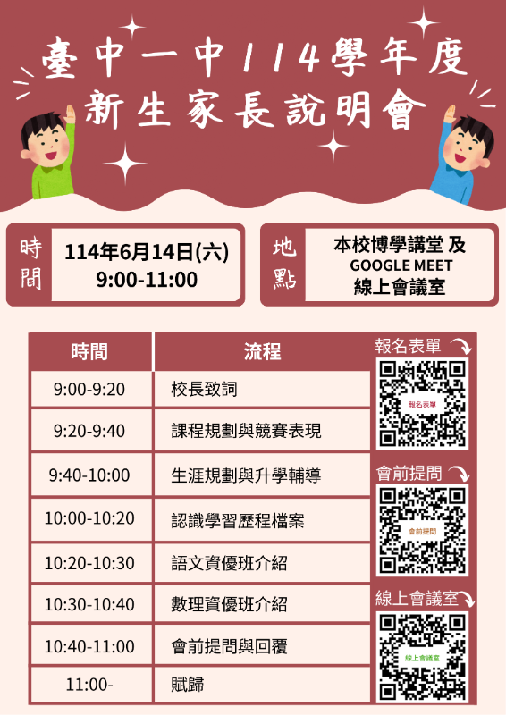 轉知 臺中市立臺中第一高級中等學校 辦理114學年度新生家長說明會 |