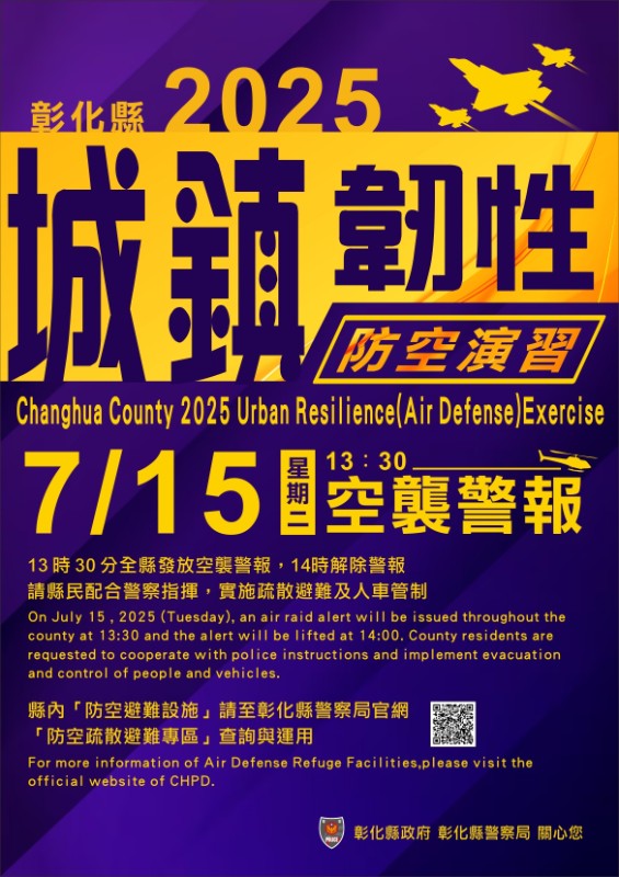 【彰化縣2025城鎮韌性(防空)演習通知】