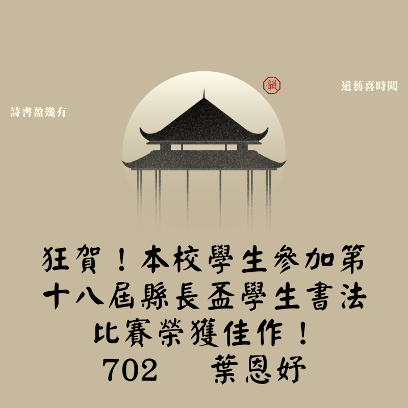 狂賀!本校學生參加第十八屆縣長盃學生書法比賽榮獲佳作!