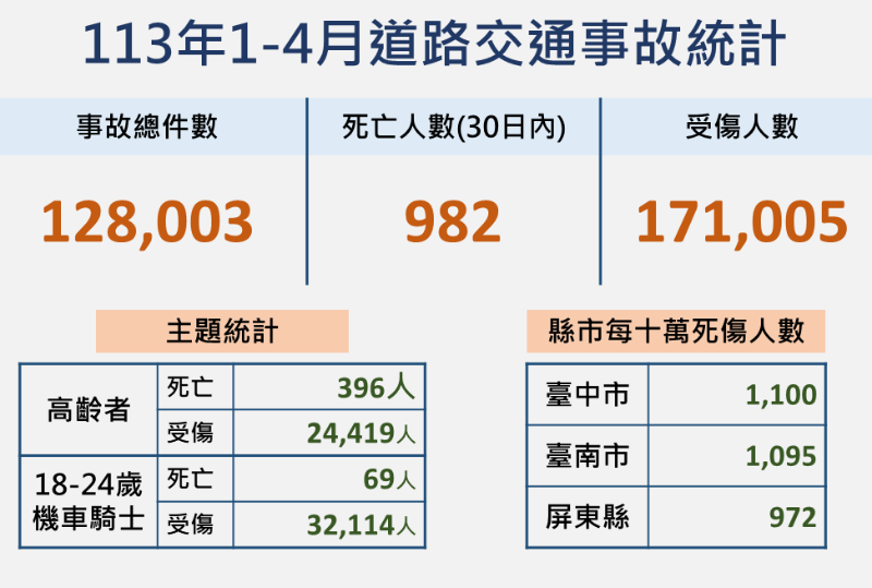 轉知本縣113年4月道路交通事故死傷情形,請親師生共同維護交通安全。