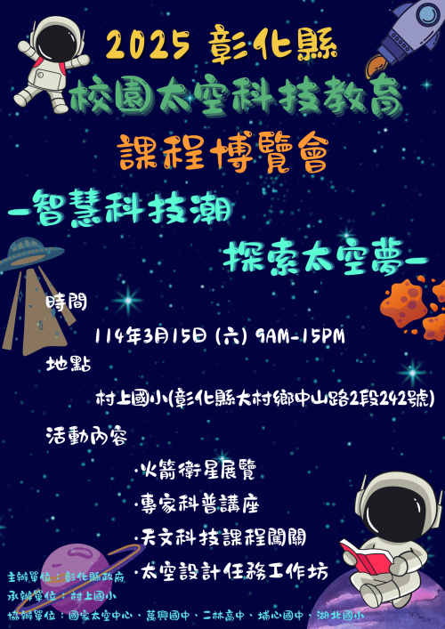 五、檢附「2025 彰化縣校園太空科技教育課程博覽會」計畫及宣傳海報各1份。