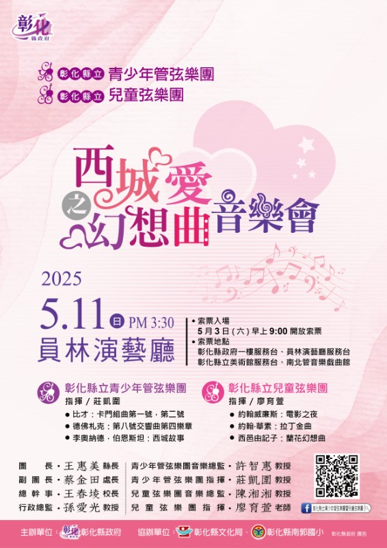 一年一度的音樂盛事即將到來!彰化縣立青少年管弦樂團暨兒童弦樂團將於114年5月11日(星期日)下午3時30分在員林演藝廳舉辦年度公演《西城愛之幻想曲》,誠摯邀請熱愛音樂的您前來感受青春與音符交織的華麗樂章!