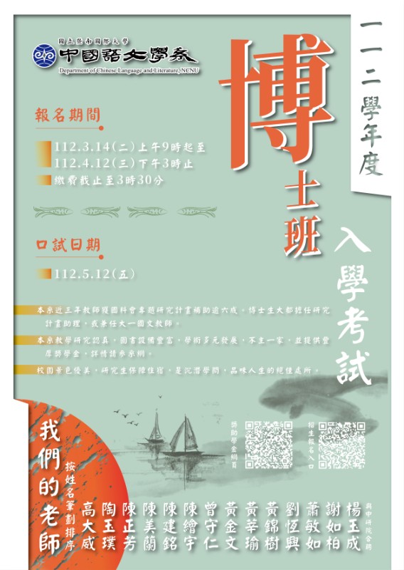 轉知國立暨南國際大學中國語文學系112學年度博士班入學考試開始報名