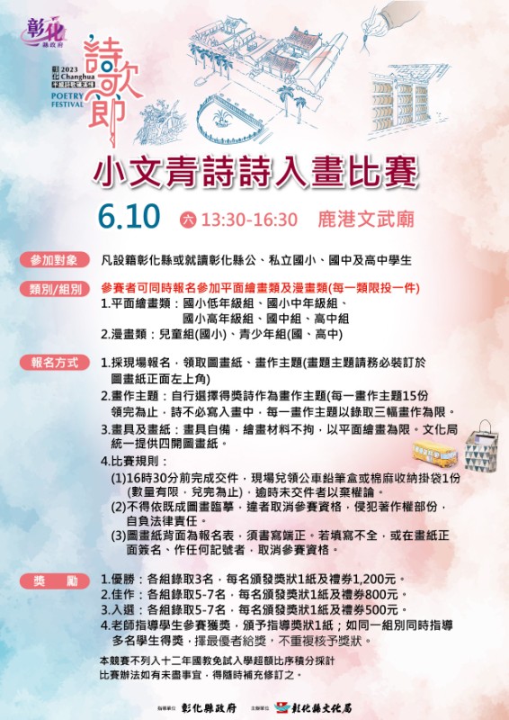 轉知:本局辦理「2023彰化詩歌節~小文青詩詩入畫比賽」簡章1份。