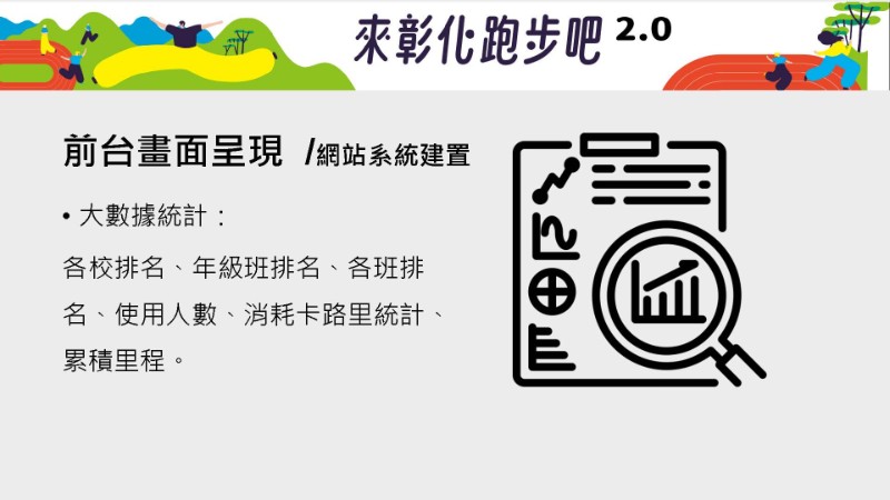 學生體育課或課堂間到操場跑步,里程會自動記錄及累積到來「彰化跑步吧0學童大跑步學生」系統中,該學生的名下。