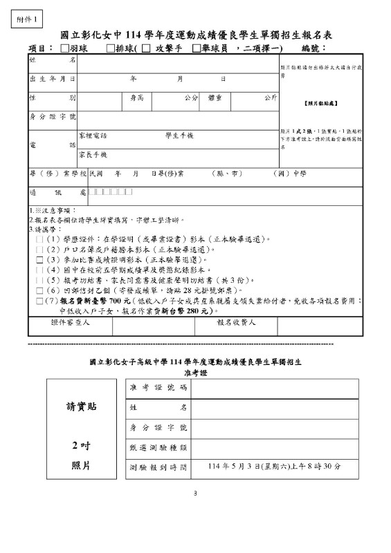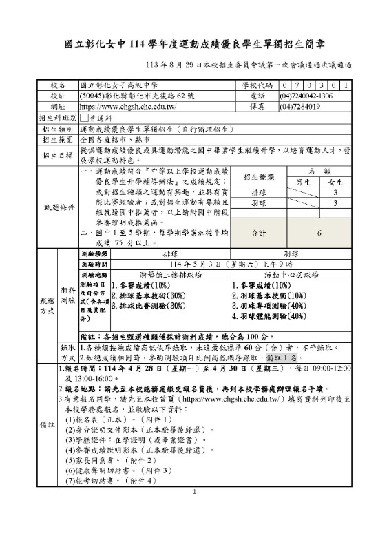 【體育組公告】轉知114學年度運動成績優良學生單獨招生相關訊息 |