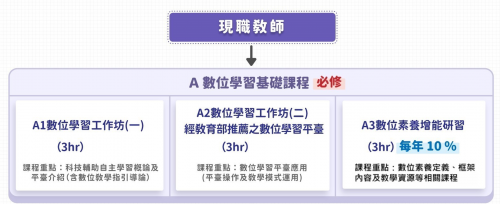 一、依據本處114年2月12日第11401187號、114年3月17日第11402603號行政公告賡續辦理。 二、依據教育部規定,A3數位素養研習為必修項目,各校每年完成研習人數應達10%以上,並以不重覆為目標。 三、本府於114年05月28日(三)下午1時30分至4時30分,辦理A3數位素養增能研習,研習代碼:4951009。 四、教師亦可至教育部磨課師平台(https://moocs.moe.edu.tw/moocs/#/course/detail/10002252) 完成線上課程。 五、如有未盡事宜,請逕洽數位學習推動辦公室 04-7237182#20。 |