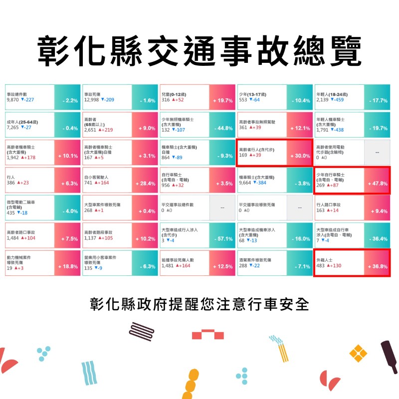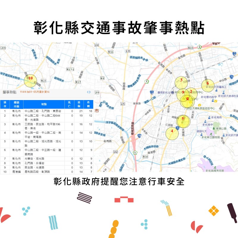 轉知:交通安全宣導,共同重視交通安全,本縣114年1-5月道路交通事故死傷累計12,998人。