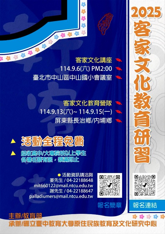 轉知:2025客家文化教育研習