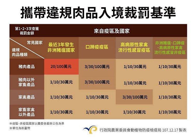 https://cpd.moe.gov.tw/index.php?guid=FF2280F3-9777-A546-9E56-100B7531BD9A 因將屆寒假及春節國內外旅遊、學術交流及境外生返鄉密集期間,為防範非洲豬瘟疫情發生,提供相關資訊及裁罰規定注意事項。 |