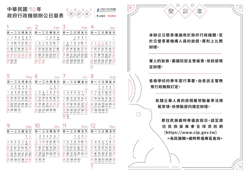 | 標題 | 112年政府行政機關辦公日曆表 |