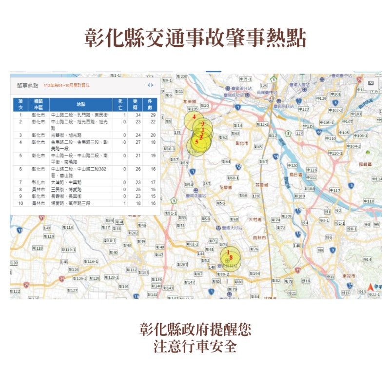 轉知本縣113年1-10月道路交通事故死傷累計資料,請多加留意交通安全。