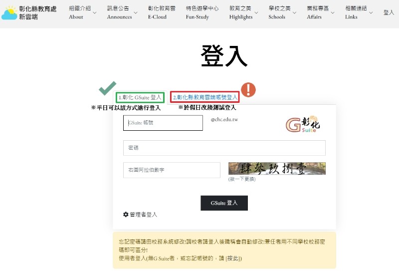 四、以上作業如可正常運作,係彰化GSuite服務將於114年7/7(一)將轉至彰化縣教育雲端帳號認證服務進行登入。