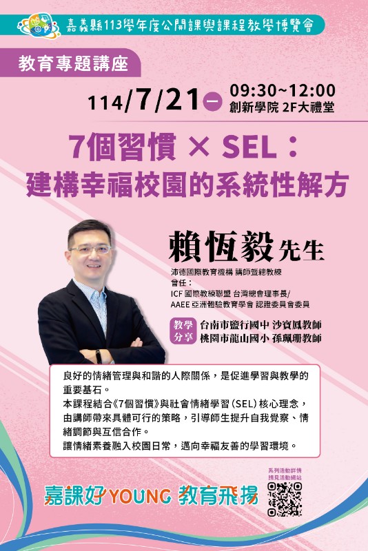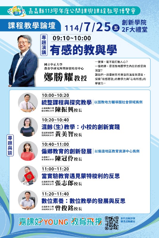| 標題 | 轉知:嘉義縣政府縣【嘉課好Young教育飛揚】-113學年度公開課與課程教學博覽會活動訊息 |