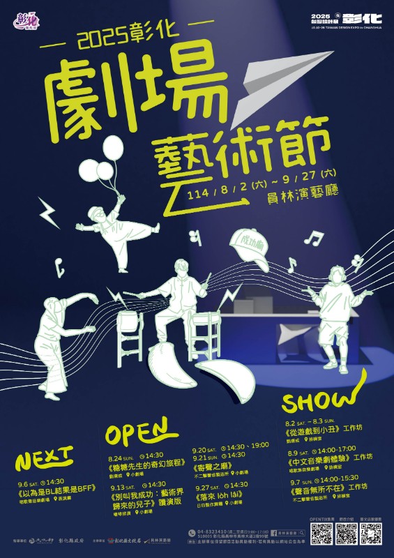 內容 一、依據彰化縣文化局114年7月18日彰文南字第1140008811號函辦理。 二、本縣文化局為厚植地方藝文生命力、推廣優質表演藝術節目,今(114)年自8月2日至9月27日於員林演藝廳辦理「2025彰化劇場藝術節」,邀請國內外優質團隊帶來5檔精彩演出、3檔工作坊及1場演後座談;演出包含丑戲、音樂劇、讀劇、擊樂及新創舞作,工作坊則有丑劇即興、音樂劇體驗、聲響創作等。 三、提供本縣立各級學校教職員購票優惠如下: (一)7月31日(星期四)前購票,不限票價、不限張數享早鳥75折優惠。 (二)8月1日(星期五)後購票,輸入優惠代碼25gpfm,享9折優惠。 (三)身心障礙人士及陪同者1名、65歲以上長者,購票享5折優惠(入場時應出示證明文件)。 (四)13-22歲青年使用文化幣購買青年席位另有優惠(入場時應出示證明文件)。 四、購票請至OPENTIX 兩廳院文化生活售票系統(https://reurl.cc/x3gdxe)或員林演藝廳服務台(電話:04-8323410分機213);更多節目資訊及優惠詳情,請上員林演藝廳官網(https://gov.tw/ajU)查詢。 五、檢附「2025彰化劇場藝術節」活動海報1份供參閱