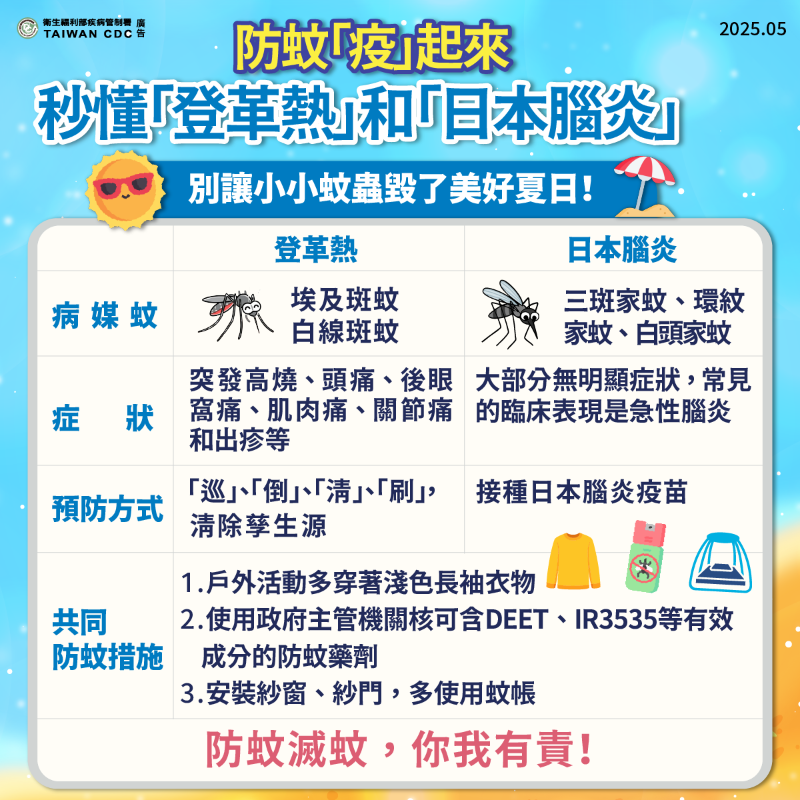 - 徹底清除孳生源 保護自己避叮咬