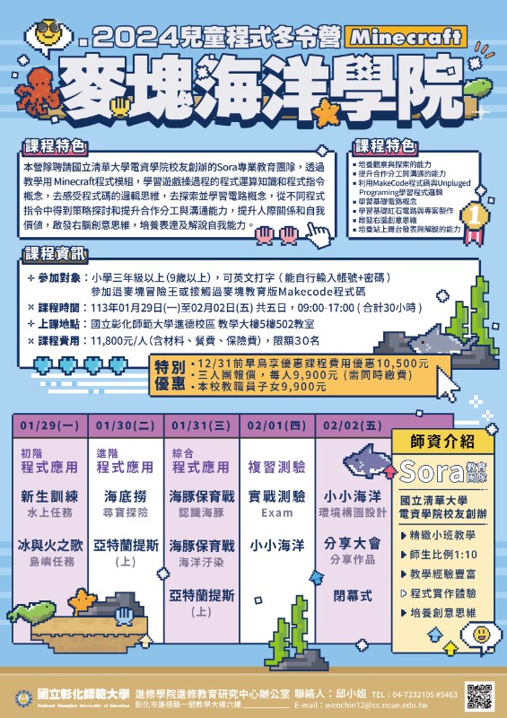 「2024兒童程式冬令營-Minecraft 麥塊海洋學院」 |