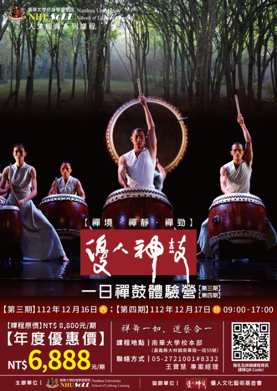 課程單元內容:請參見附件【禪境.禪靜.禪勁-優人神鼓】一日禪鼓體驗營(第三、四期)招生簡章。 |