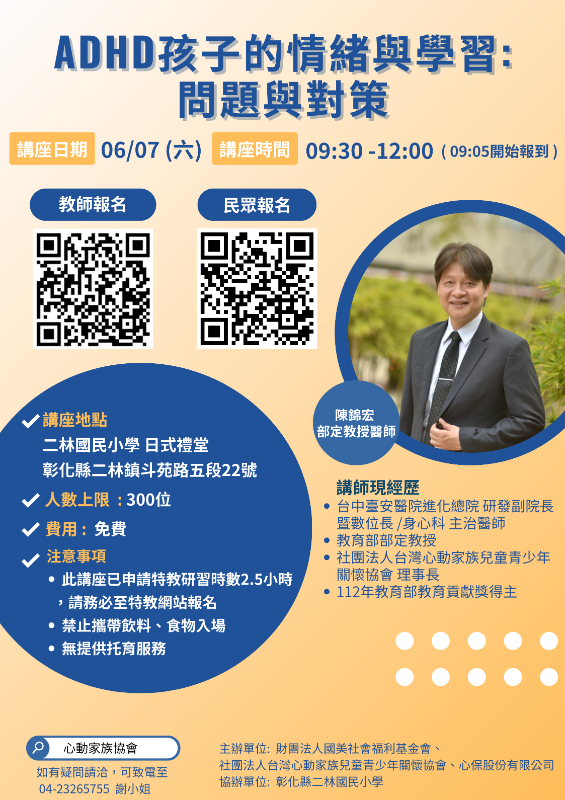 本次講座將申請全國特教時數2.5小時,若有需求請至全國特教時數網報名。