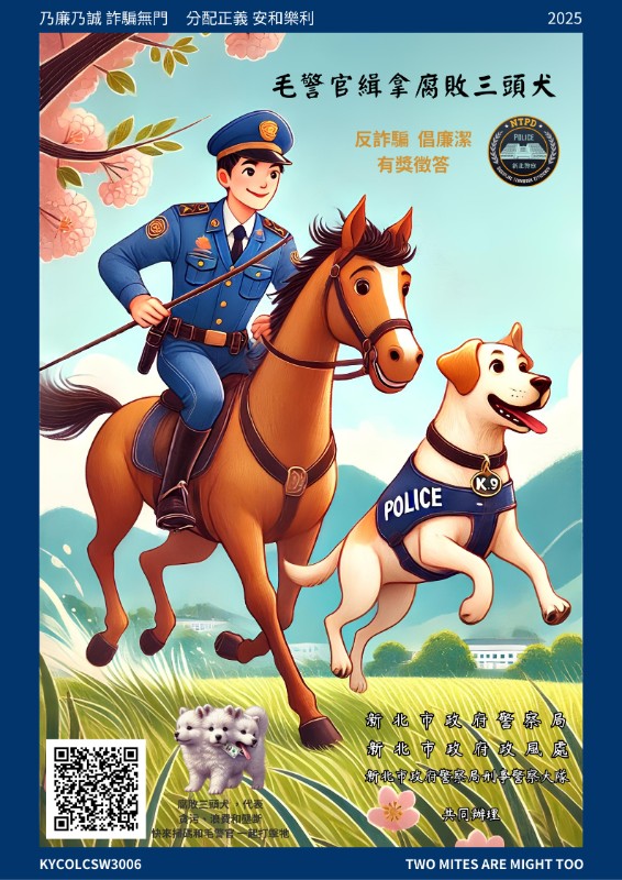 新北市政府警察局辦理「『毛警官緝拿腐敗三頭犬』反詐騙倡廉潔有獎徵答活動」 |