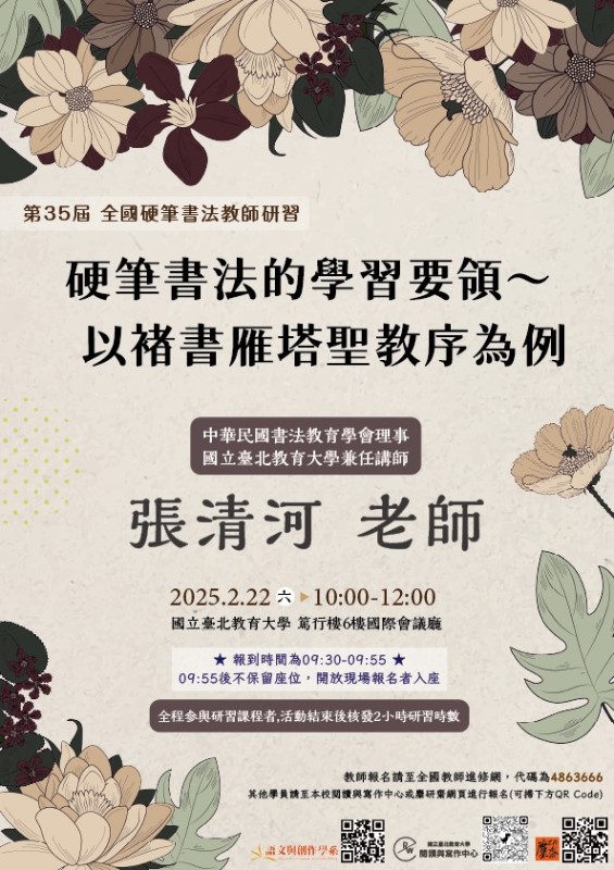 轉知有關國立臺北教育大學辦理「第35屆硬筆書法教師研習」