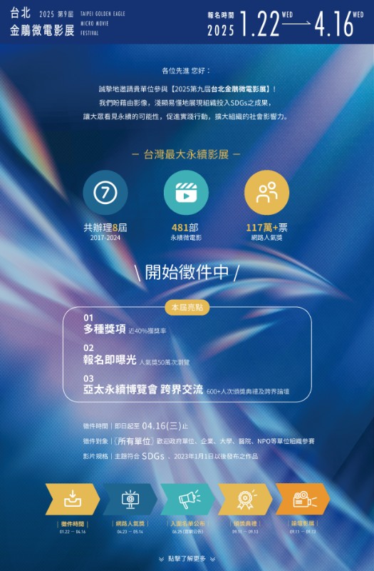 轉知財團法人台灣永續能源研究基金會舉辦「2025第九屆台北金鵰微電影展」活動