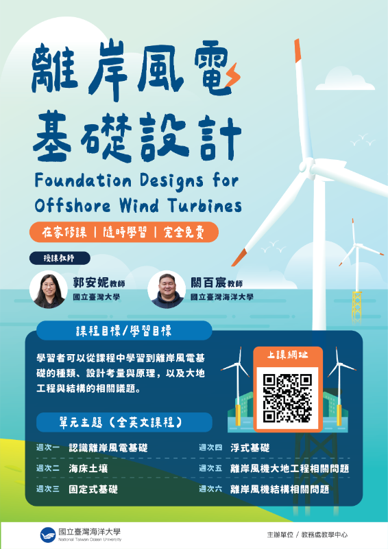 轉知:國立臺灣海洋大學開設「離岸風電基礎設計」磨課師線上課程