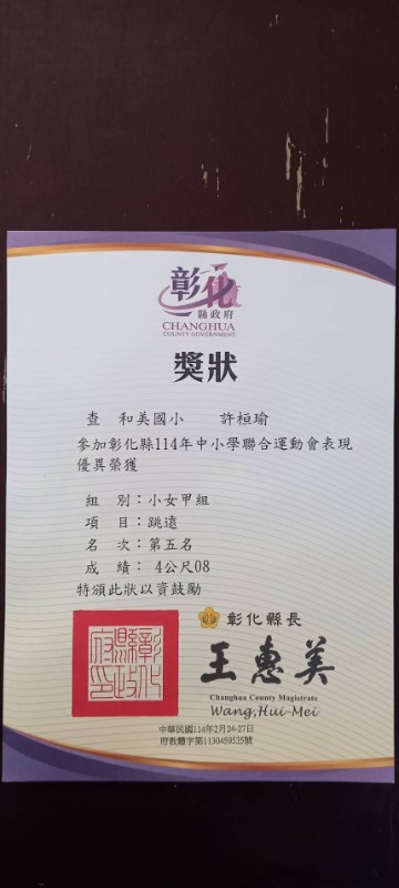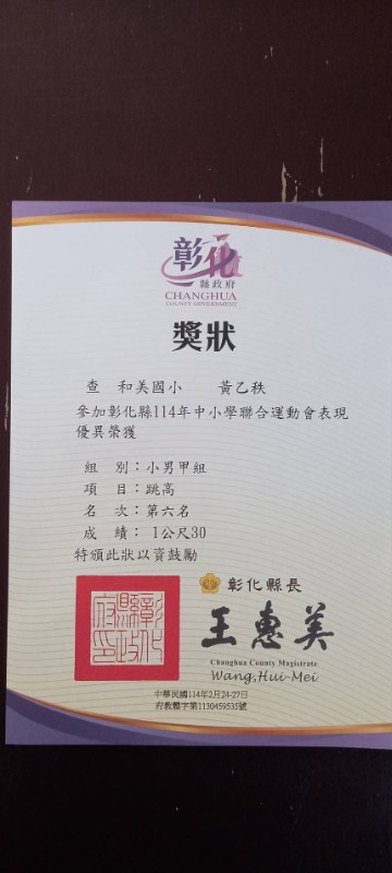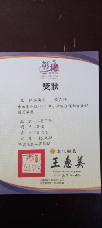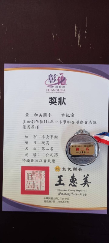 恭喜! 603許桓瑜 602黃乙秩 參加彰化縣114年中小學聯合運動會榮獲佳績!