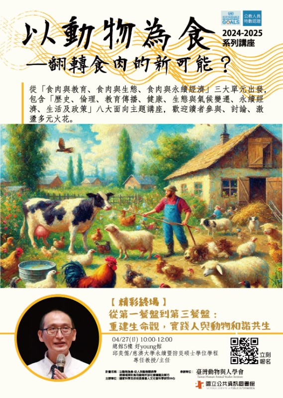 轉知國立公共資訊圖書館辦理「以動物為食」系列講座暨書展114年4月場次活動資訊
