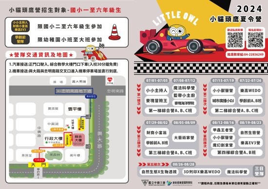 轉知~中興大學「2024小貓頭鷹夏令營」招生訊息