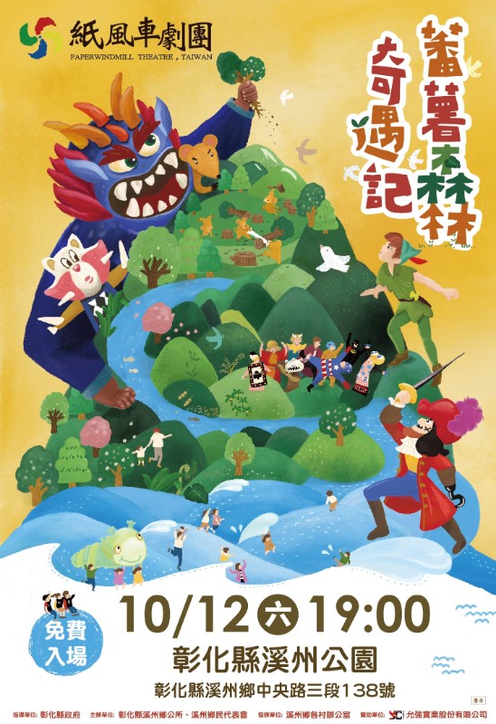 說明: 一、 播放時間:自即日起至113年10月12日止。 二、 播放內容:10月12日(星期六)晚上7點於溪州鄉溪州公園,演出「紙風車兒童劇團」《番薯森林奇遇記》,免票入場,歡迎闔家觀賞。 三、 檢附紙風車兒童劇團《番薯森林奇遇記》文宣電子檔1份(如附件)。