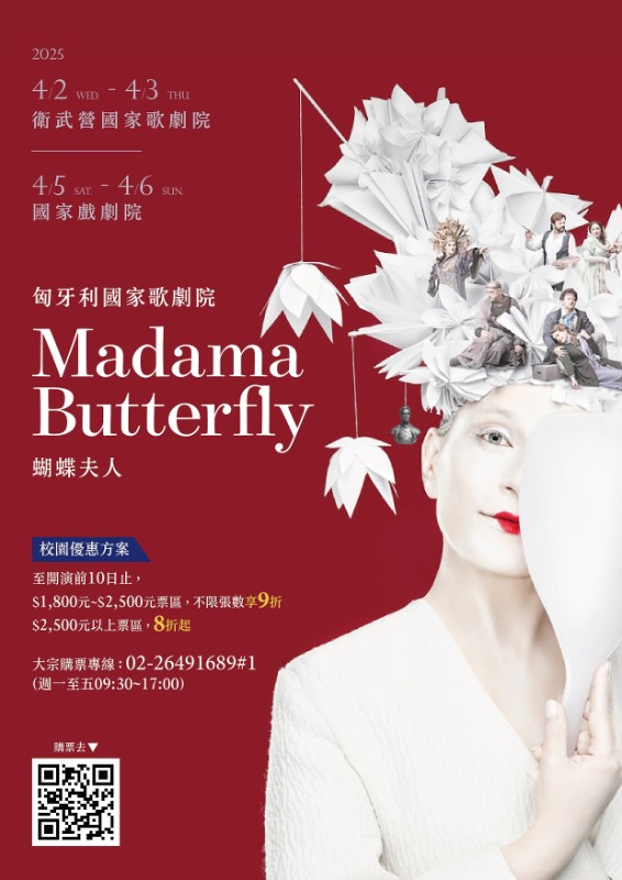說明: 一、齊名世界頂尖劇院「匈牙利國家歌劇院」將於2025年4月攜旗下歌劇、芭蕾舞團,帶來經典歌劇《蝴蝶夫人》與芭蕾舞劇《天鵝湖》,分別於國家戲劇院及高雄衛武營國家歌劇院登場,此次巡演將比照歐洲規模,動員超過百人製作團隊,並挑戰一週同時於北高兩地演出兩部作品,為台灣觀眾獻上歌劇與芭蕾藝術的最高水準。誠摯推薦各級學校師生前來觀賞精彩演出,感受藝術魅力,並藉此機會增進對歌劇和芭蕾舞的了解。相信這將會是非常難得的學習和文化體驗。 二、表演場次: (一) 歌劇《蝴蝶夫人》台北國家戲劇院 1、2025/4/5(六)14:30、19:30 2、2025/4/6(日)14:30 (二) 歌劇《蝴蝶夫人》高雄衛武營國家歌劇院 1、2025/4/2(三)14:30 2、2025/4/3(四)14:30、19:30 (三) 芭蕾舞劇《天鵝湖》台北國家戲劇院 1、2025/4/2(三)19:30 2、2025/4/3(四)13:00、19:30 (四) 芭蕾舞劇《天鵝湖》高雄衛武營國家歌劇院 1、2025/4/5(六)13:00、19:30 2、2025/4/3(日)13:00 三、表演介紹: (一) 【蝴蝶夫人】 1、《蝴蝶夫人》為義大利作曲家普契尼創作的經典歌劇,以日本年輕藝伎「蝴蝶夫人」秋秋桑與美國軍官平克頓之間的悲劇愛情故事為主軸。秋秋桑為愛犧牲一切,卻遭遇背叛,最後選擇以生命捍衛尊嚴。於1904年2月17日在米蘭史卡拉歌劇院推出歌劇版首演,卻以慘敗收場,普契尼為此進行大幅修改,在5月於布雷西亞重新上演,獲得了極大成功,此後,作曲家依舊三度修訂,其中最後的第五版成為目前於世界各地廣泛演出的版本,也是匈牙利國家歌劇採用的版本。 2、匈牙利國家歌劇院的《蝴蝶夫人》,於2000年由當代匈牙利最具國際聲望的大導演Miklós Gábor Kerényi執導,二十多年來上演不墬,廣受觀眾歡迎,亦曾受邀於世界各地上演。 (二) 【天鵝湖】 1、匈牙利國家歌劇院芭蕾舞團是匈牙利唯一的古典芭蕾舞團,每年推出豐富的經典和現代舞蹈作品,獲得國際一致好評;每個樂季推出約100場演出,除了以精湛的古典芭蕾技巧呈現引人入勝的大型舞劇之外,也有當代舞蹈大師的新創作品、或結合馬戲的元素的跨界型態,深受觀眾喜愛。 2、柴可夫斯基的首部芭蕾作品《天鵝湖》是許多芭蕾愛好者最喜愛的經典作品之一。這個動人的俄羅斯浪漫童話,講述一位王子與一位因詛咒而變成天鵝的少女之間的愛情故事,由同一位芭蕾舞者同時扮演純潔無辜的白天鵝奧黛特和誘惑狡詐的黑天鵝奧狄兒,使劇情更加精彩。匈牙利國家歌劇院芭蕾舞團的《天鵝湖》,自2015年以來已成為匈牙利國家歌劇院芭蕾舞團的招牌劇目,以豪華盛大的舞者陣容、華麗精美的舞台與服裝設計聞名。 四、購票優惠方案及票價: (一) 校園團體優惠方案: 1、至各場次前10日止,$1800元票區~2500元票區,不限張數,享9折。$2500元以上票區,2張(含)以上享82折,4張(含)以上享8折。 2、專屬訂購連結:https://bit.ly/3OE3xTp 五、敬請惠予公告本表演相關訊息於貴單位。 六、檢送本活動EDM,呈請貴校員工、師生及家長踴躍參加。 七、本案聯絡單位:通路行銷中心服務專線:(02)02-2649-1689#1。傳真:(02)8643-354。